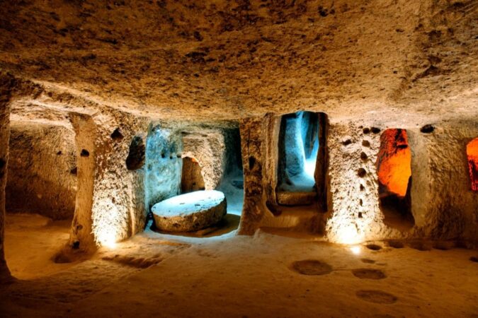 Pickup to hotel. Breakfast break at the resting facility in Taurus Mountains. After wc-rest break in Aksaray. Visit saratlı underground city. Lunch time in Cappadocia,Panaroma below the Uç hisar castle. Visit to Göreme open air museum, Güvercinlik valley, Açıklar valley and Devrent valley. Then we visit delight center, crockery workshop. Arrival at the hotel a 4 o'clock. Dinner time at hotel.